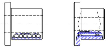 加工发动机的曲轴孔及凸轮轴孔时,镗杆通过浮动接杆与主轴连接,以减少主轴跳动对直线镗孔的影响,导向套通常采用GM系列和GBM系列的导向套。其中,GM系列的精密导向套是由一对间隔开的经过筛选的超高精度的角接触球承构成,可为较长的刀杆提供较好的稳定性。GBM系列的精密导向套采用了滚珠和保持架的轴承结构形式,经过专门挑选的精密滚珠被加上预载,消除了运转间隙,减小了径向跳动,可应用于工件中心距较小的场合。当加工孔的中心距特别小时,也有采用有滚针轴承结构的专用导向套。由于所有的轴承或滚珠均经过了专门的筛选,因此,GATCO精密滚动导套最终的内径径向跳动值与ISO P2级精度的成套轴承内圈径向跳动值相当。根据机床的切削条件的不同GATCO精密滚动导套的寿命也有区别,正常使用的滚动导套的寿命一般为7500~10500小时。