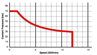水基冷却液 MQL(油雾)最高 10 bar (145 psi) |